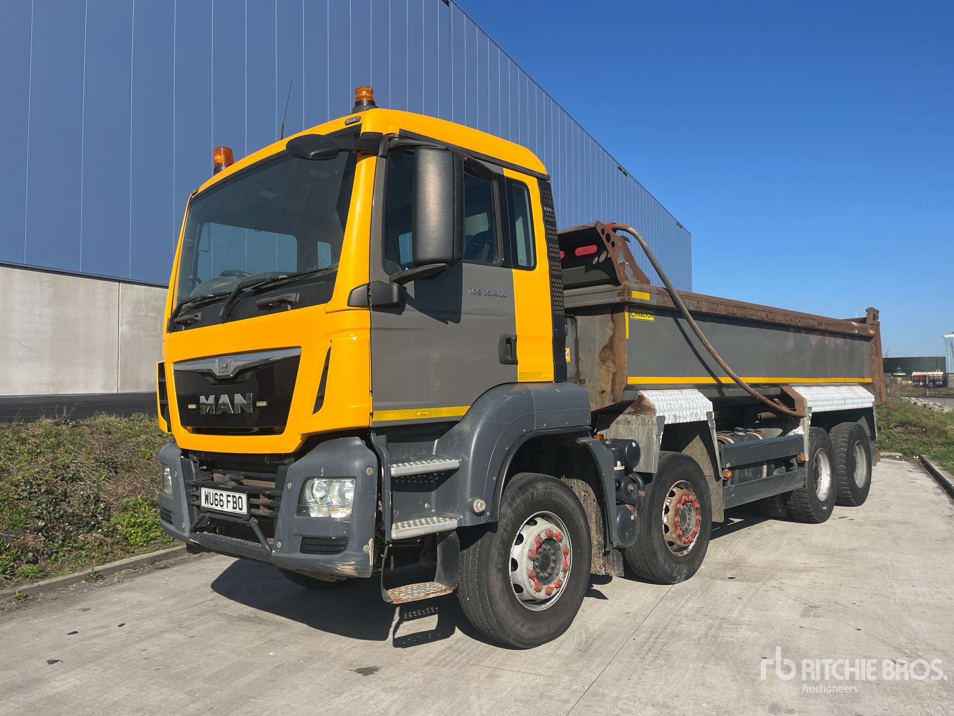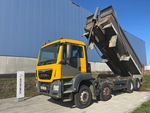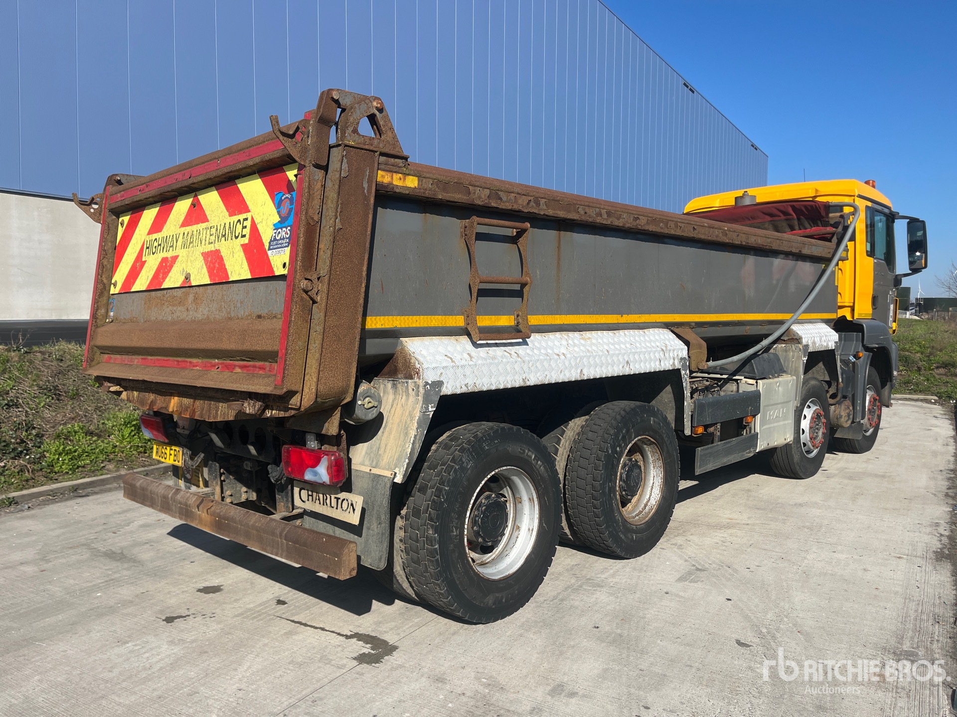 Diesel Engine, Requires AdBlue, Engine Brake, Automatic Transmission, Differential Lock, Right Hand Drive, 7100 kg Front Axle, 25200 kg Rears, 35000 kg GVWR, 295/80R22.5, Spring Suspension, 5750 mm Wheelbase, PTO, Hydraulic System, Charlton 6100 mm Long x 980 mm High Steel Body, Manual Roll Tarp, Rear And Side Cameras