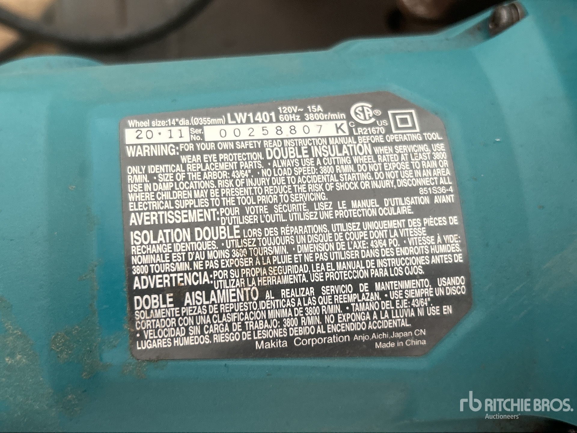 The detailed equipment information is limited in scope, and Ritchie Bros. Auctioneers has not inspected any aspects or components of the equipment other than those expressly set forth herein. Unless expressly stated, we make no representations or warranties, express or implied, concerning the equipment or its components, including without limitation any representations or warranties concerning functionality, conformity or compliance with any safety standard or requirement of any applicable authority or regulatory body, fitness for any particular purpose, or merchantability. You are strongly advised to perform your own detailed inspection of the equipment prior to bidding.