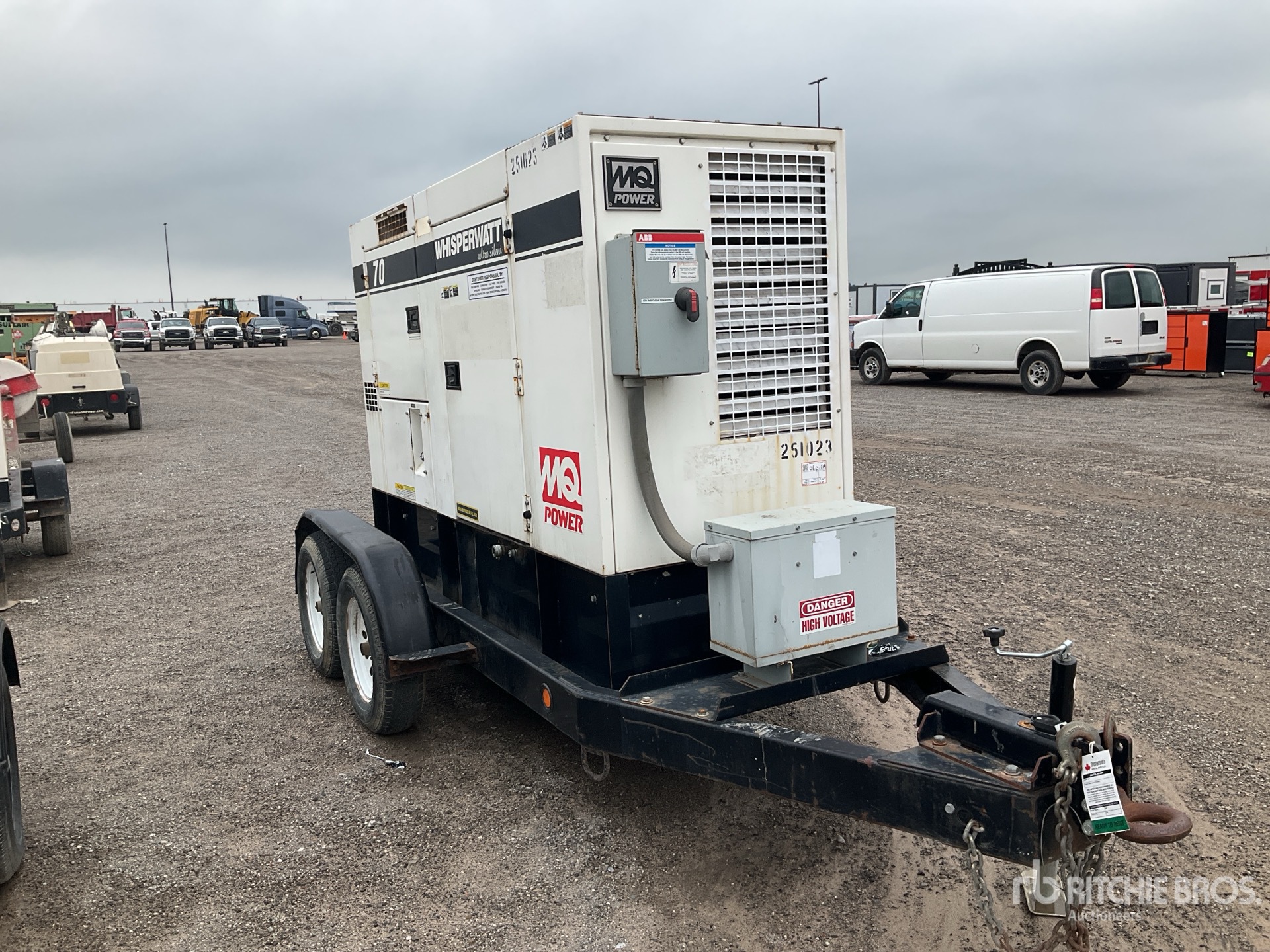 Isuzu BJ-4JJIX 4 Cylinder 73 kW 2.99 L Diesel Engine, 70 kVA/56 kW Rated 3 Phase Output, 480 V / 240 V Rated Voltage, 40 kVA,/40 kW, Rated Single Phase Output, 120 V / 240 V Rated Voltage, 240 V & 120 V Receptacles, Sound Attenuated, Bottom Mounted Fuel Tank, T/A Trailer, Lunette Ring