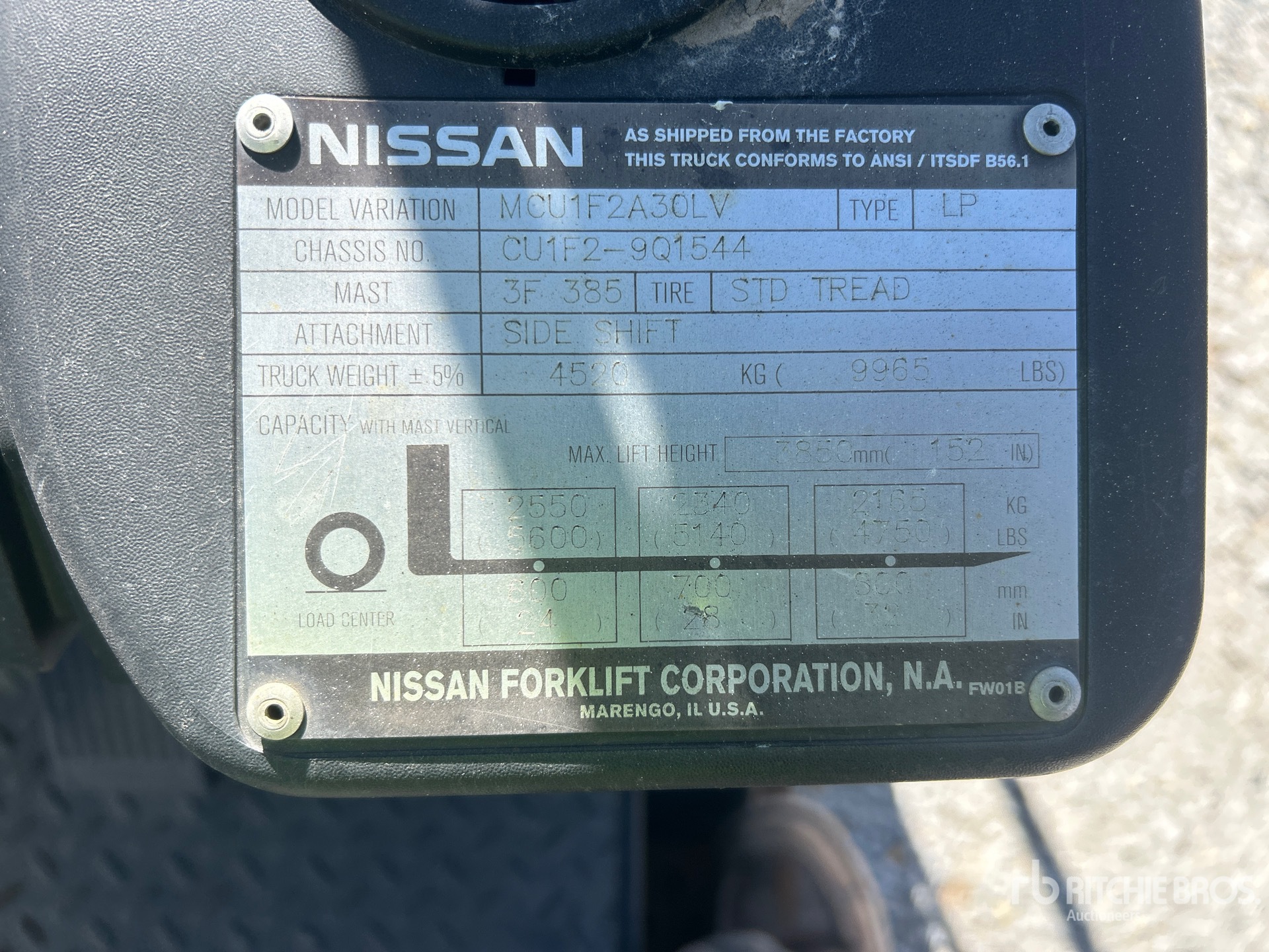 The detailed equipment information is limited in scope, and Ritchie Bros. Auctioneers has not inspected any aspects or components of the equipment other than those expressly set forth herein. Unless expressly stated, we make no representations or warranties, express or implied, concerning the equipment or its components, including without limitation any representations or warranties concerning functionality, conformity or compliance with any safety standard or requirement of any applicable authority or regulatory body, fitness for any particular purpose, or merchantability. You are strongly advised to perform your own detailed inspection of the equipment prior to bidding.
