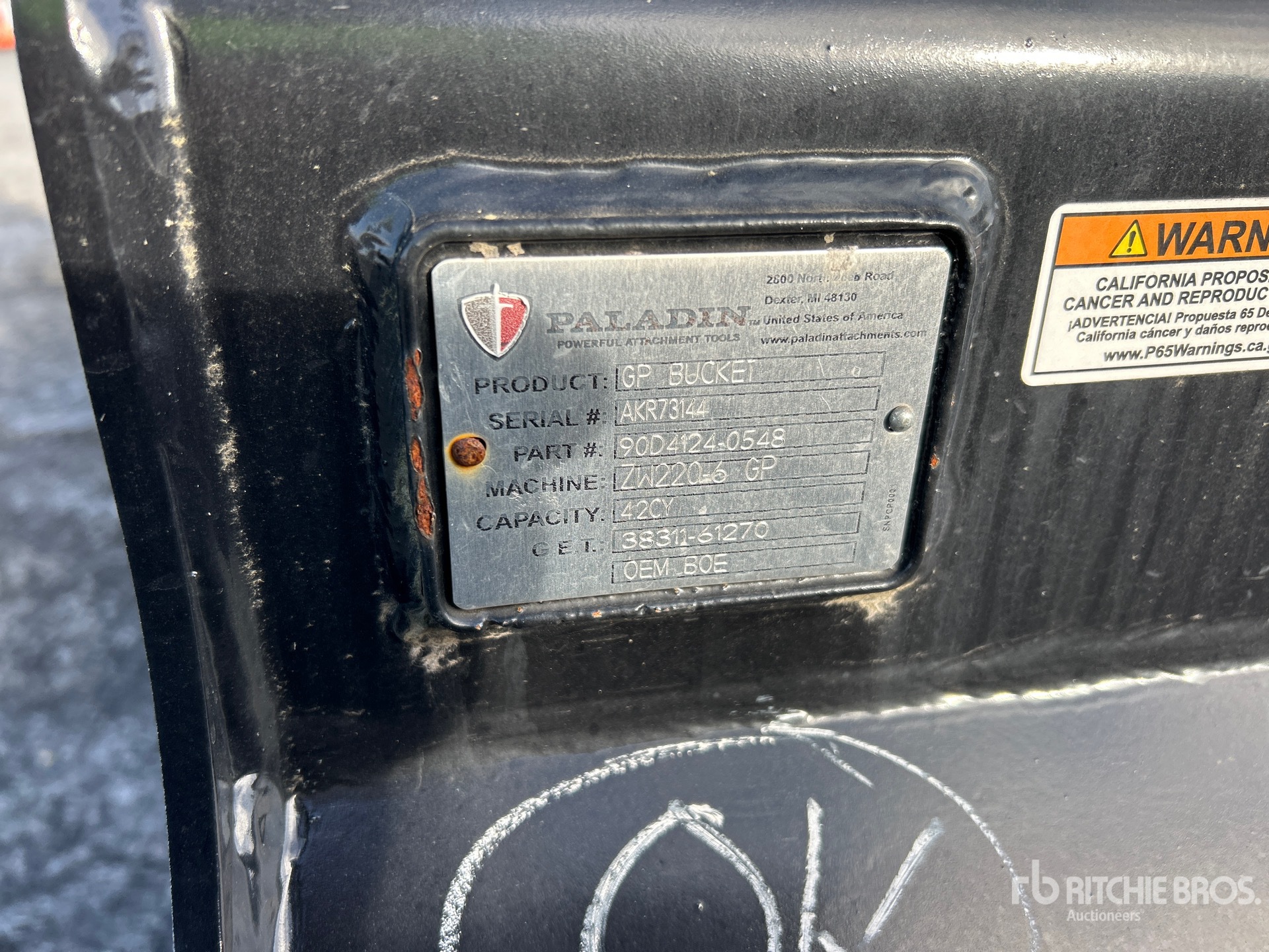 Paladin 38311-61270 115 in 4.2 cyd General Purpose Wheel Loader Bucket - Fits Hitachi ZW220 (Unused)