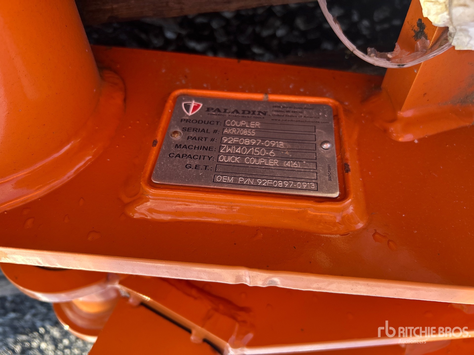 Paladin 92F0897-0913 44 in Wheel Loader Quick Coupler - Fits Hitachi ZW140/150 (Unused)