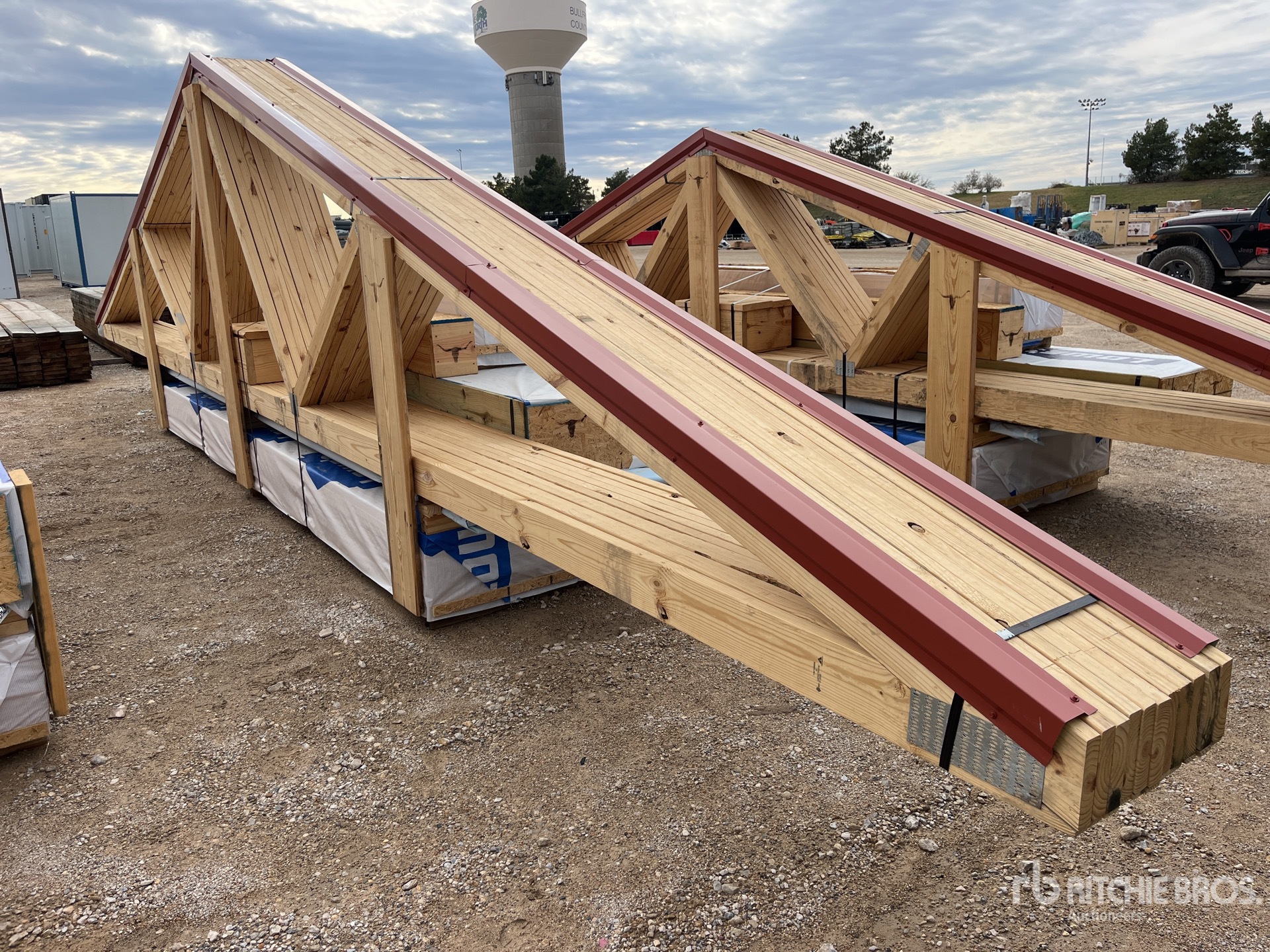 2 x 6 Wood Trusses, 6 in x 6 in x16 ft Treated Timbers, Lumber, Roof Metal ONLY, Ridge Cap & Trim, & Hardware Needed For Assembly