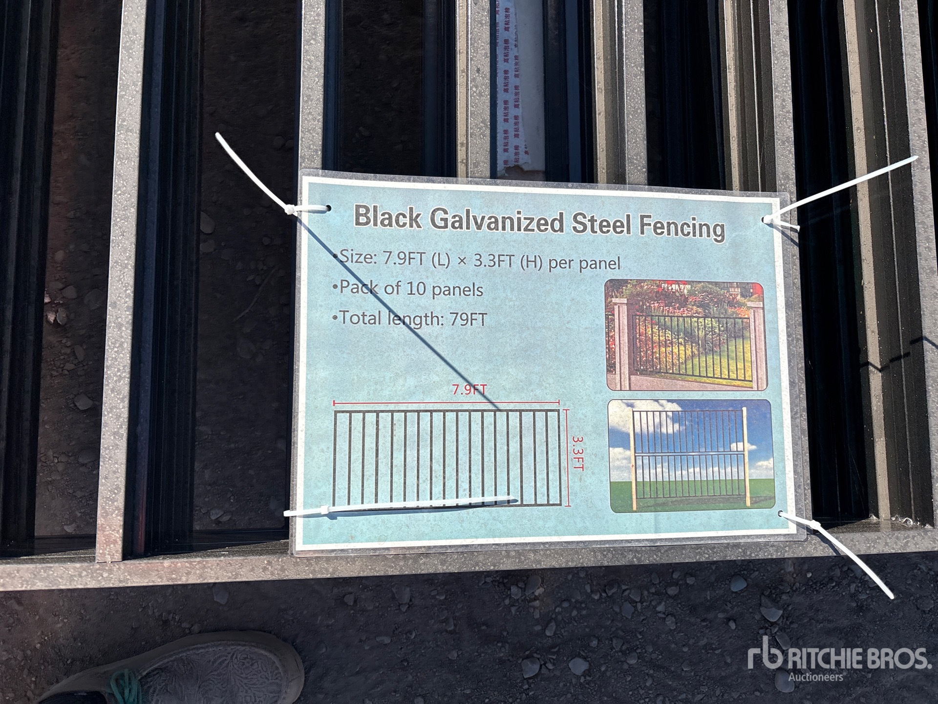 Quantity of (10) 7.9 ft x 3.3 ft Black Galvanized Steel Fencing