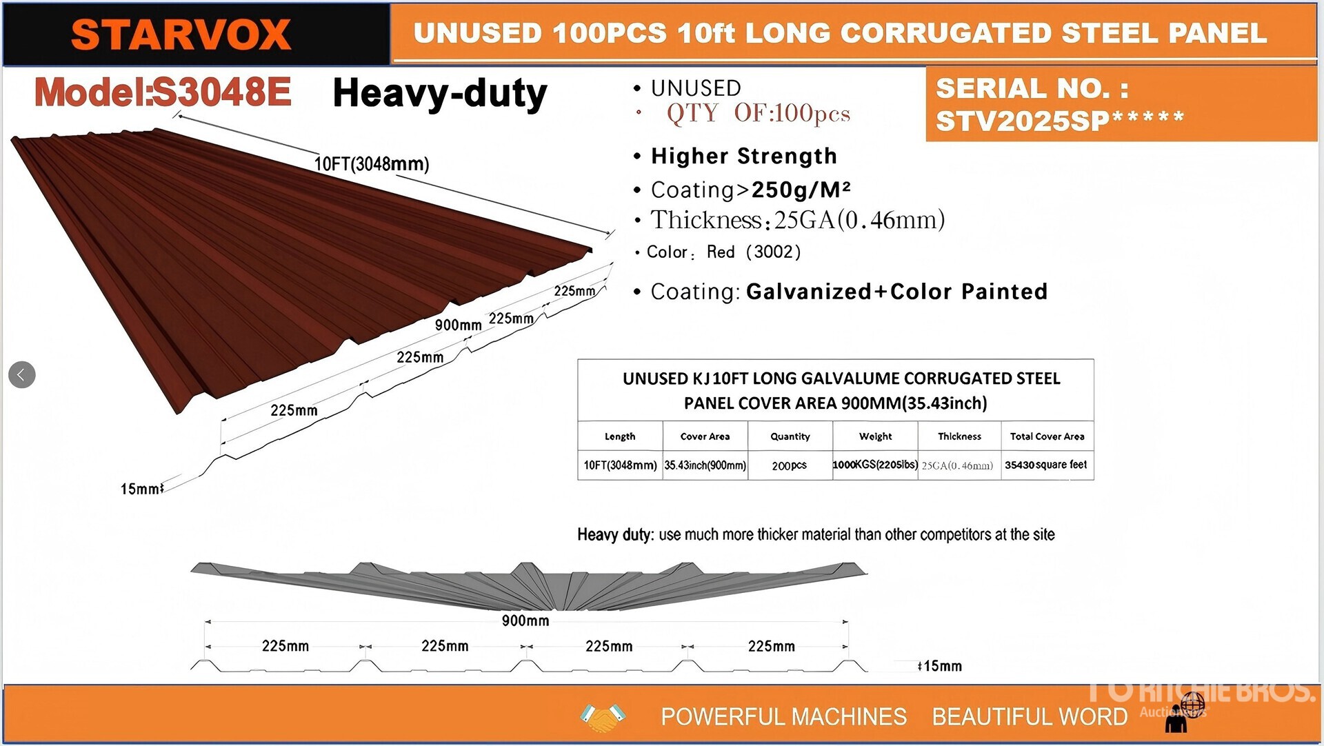 Quantity of (100) 2026 STARVOX S3048E 35 in x 10 ft Galvalume Corrugated Steel Panels (Red) (Unused)