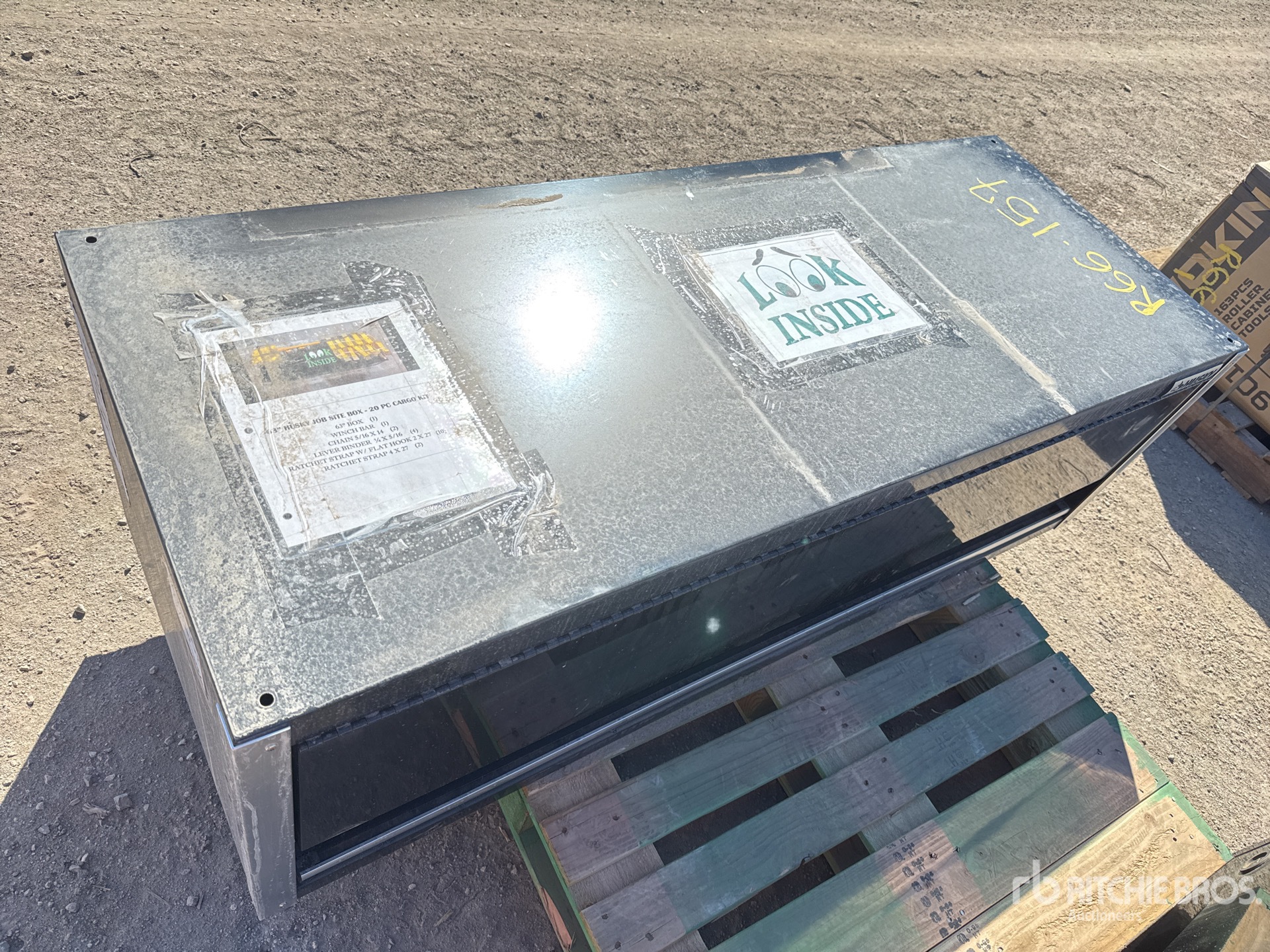 63 in Box, (1) Winch Bar, (2) 5/16 x 14 Chain, (4) 1/4 x 5/16 Lever Bar, (10) 2 x 27 Ratchet Strap w/ Flat Hook, (2) 4 x 27 Ratchet Strap