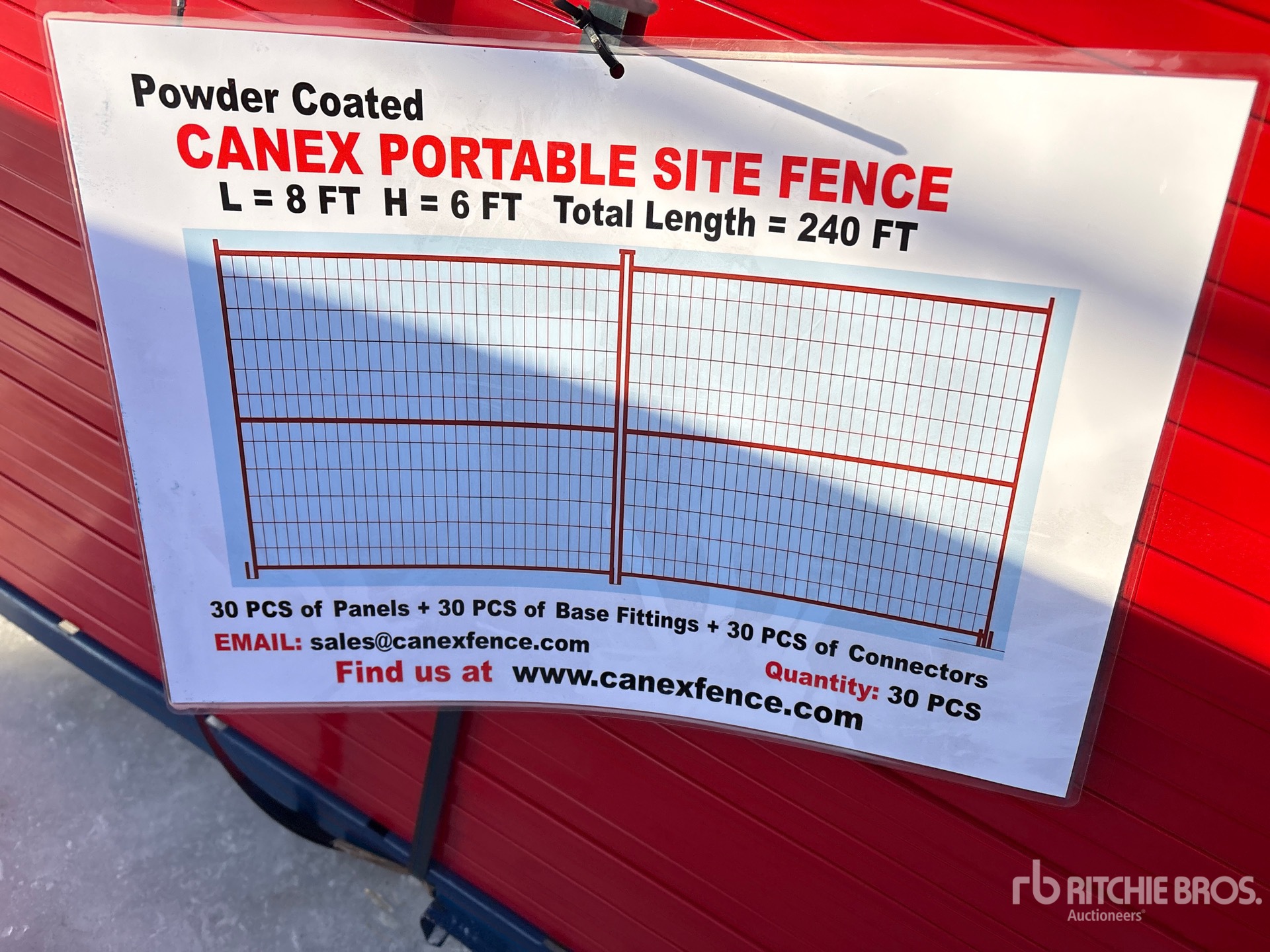 Quantity of (30) 8 ft x 6 ft Powder Coated Site Fence (Unused)