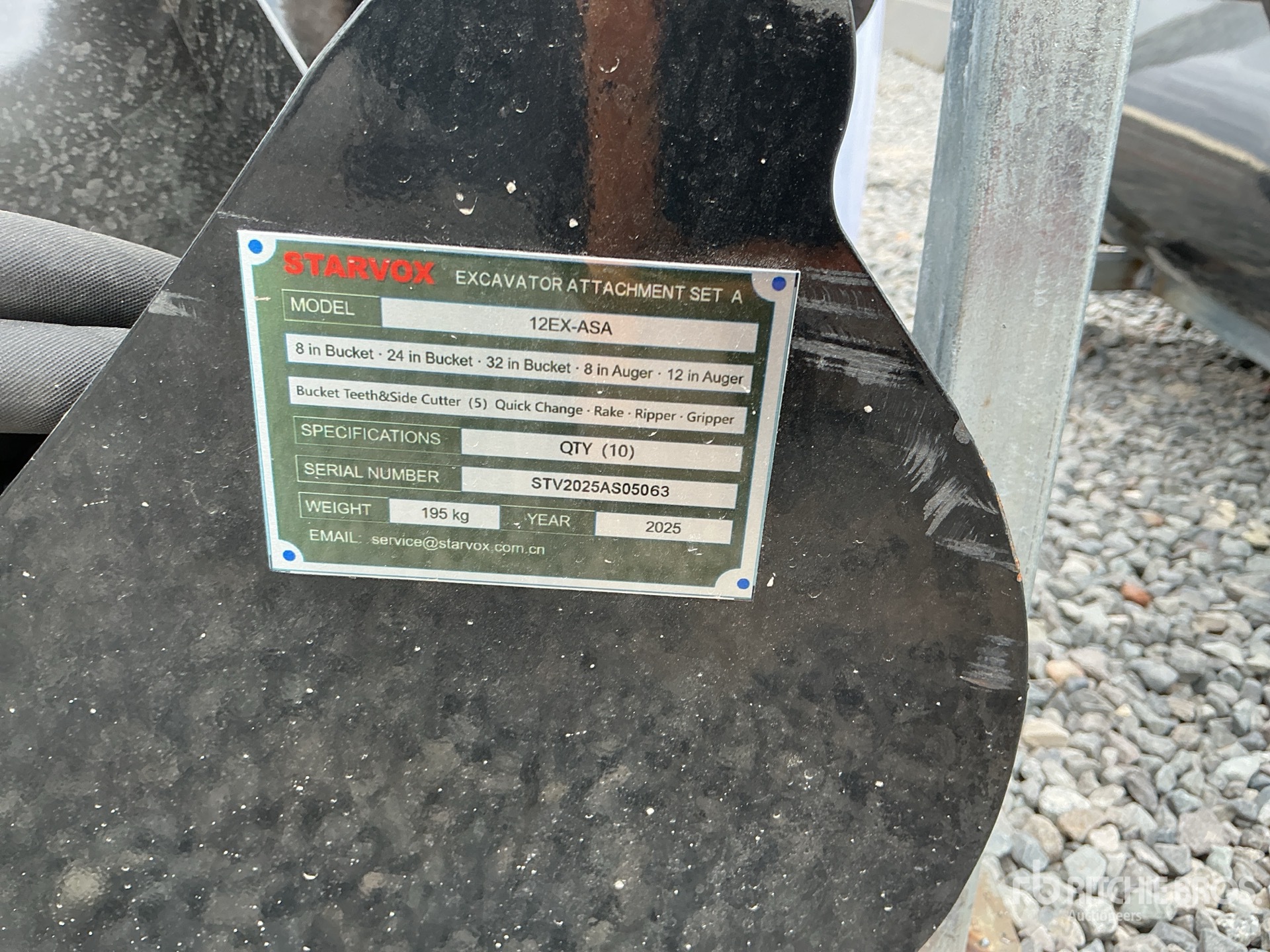 (1) 8 in Bucket, (1) 24 in Bucket, (1) 32 in Bucket, (1) 8 in Auger, (1) 12 in Auger, (1) Quick Coupler, (1) Rake , (1) Ripper, (1) Grapple, (1) Set of Bucket Teeth w/ Side Cutter
