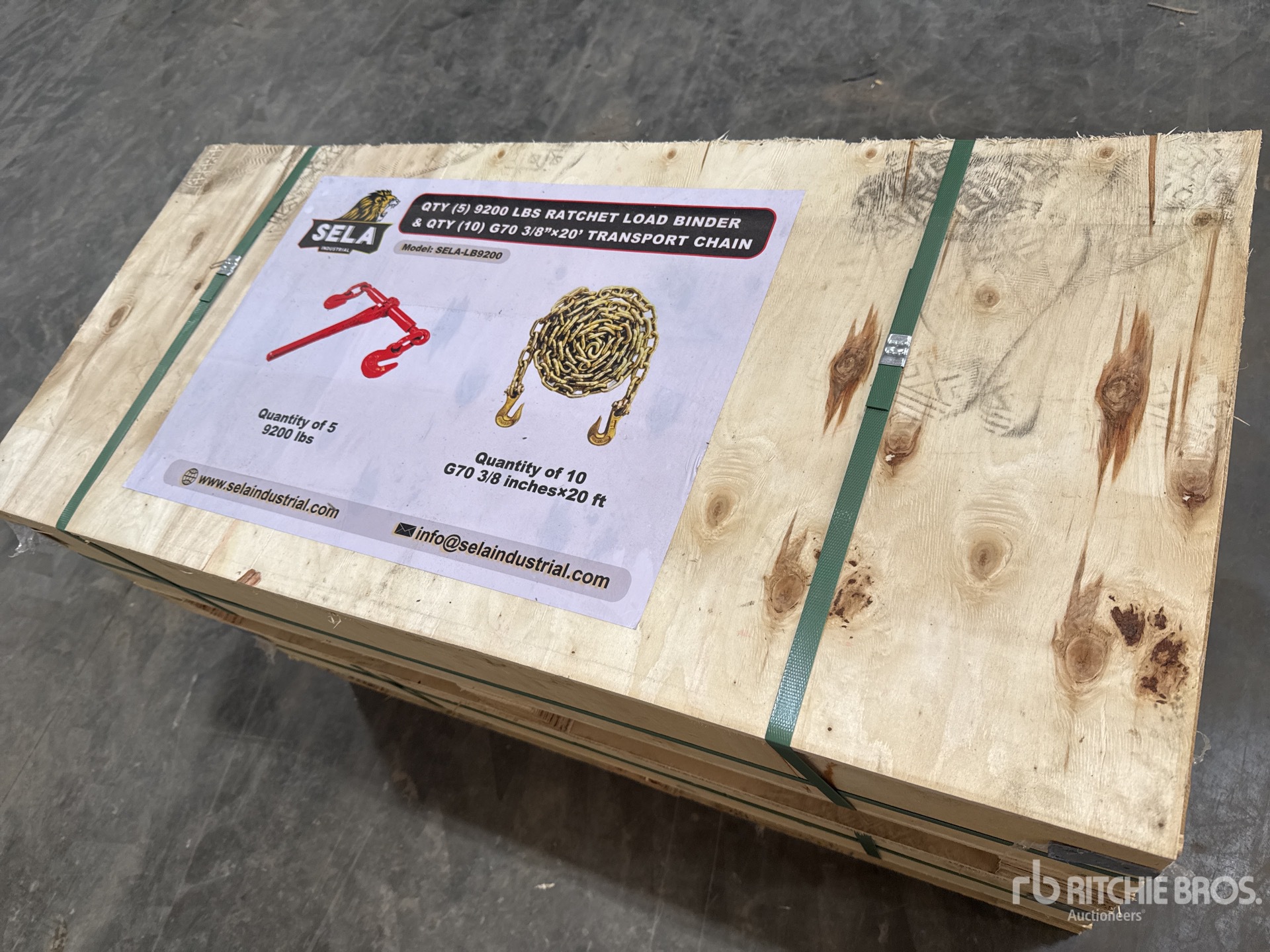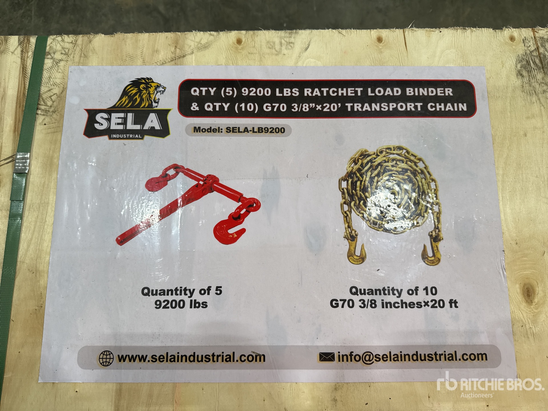 To Fit Sela SELA-LB9200, Quantity of (5) 9200 lbs Ratchet Load Binder, Quantity of (10) G70 3/8 in × 20 ft Transport Chain