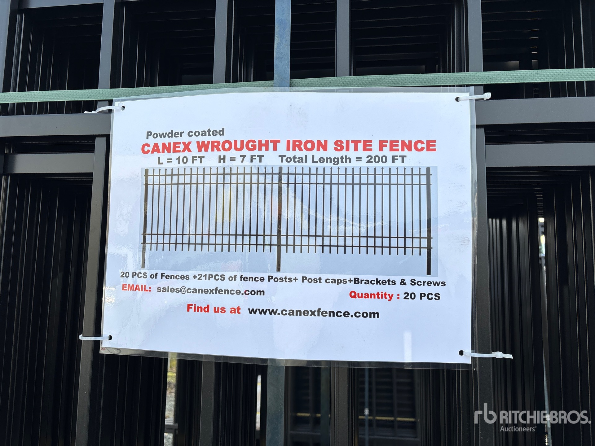 Quantity of (20) 10 ft x 7 ft Powder Coated Wrought Iron Fencing (Unused)