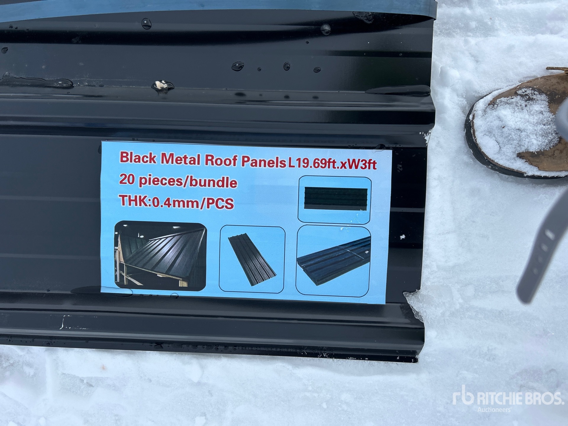 Quantity of (20) 20 Ft x 3 Ft Black Metal Roof Panels (Unused)