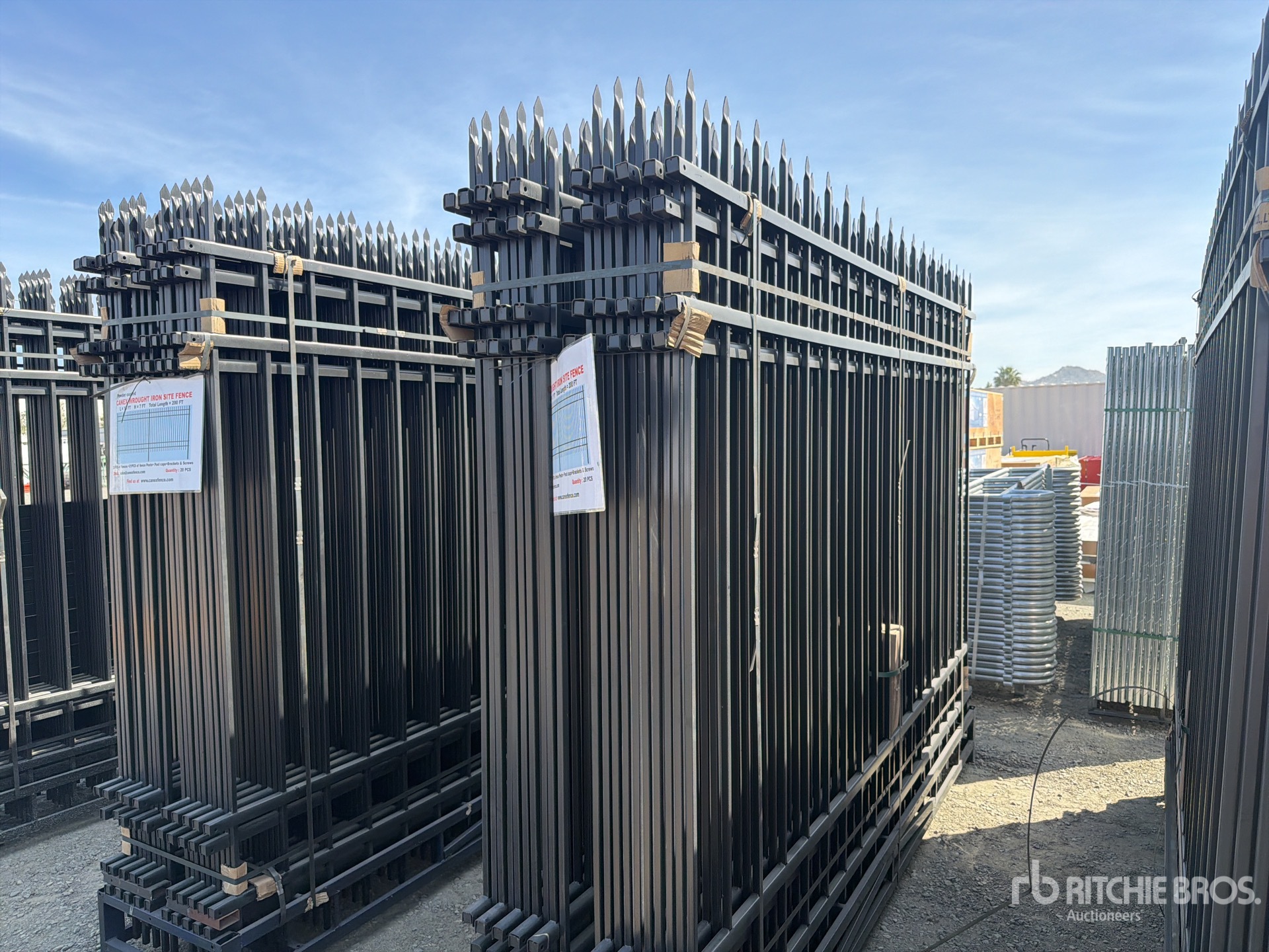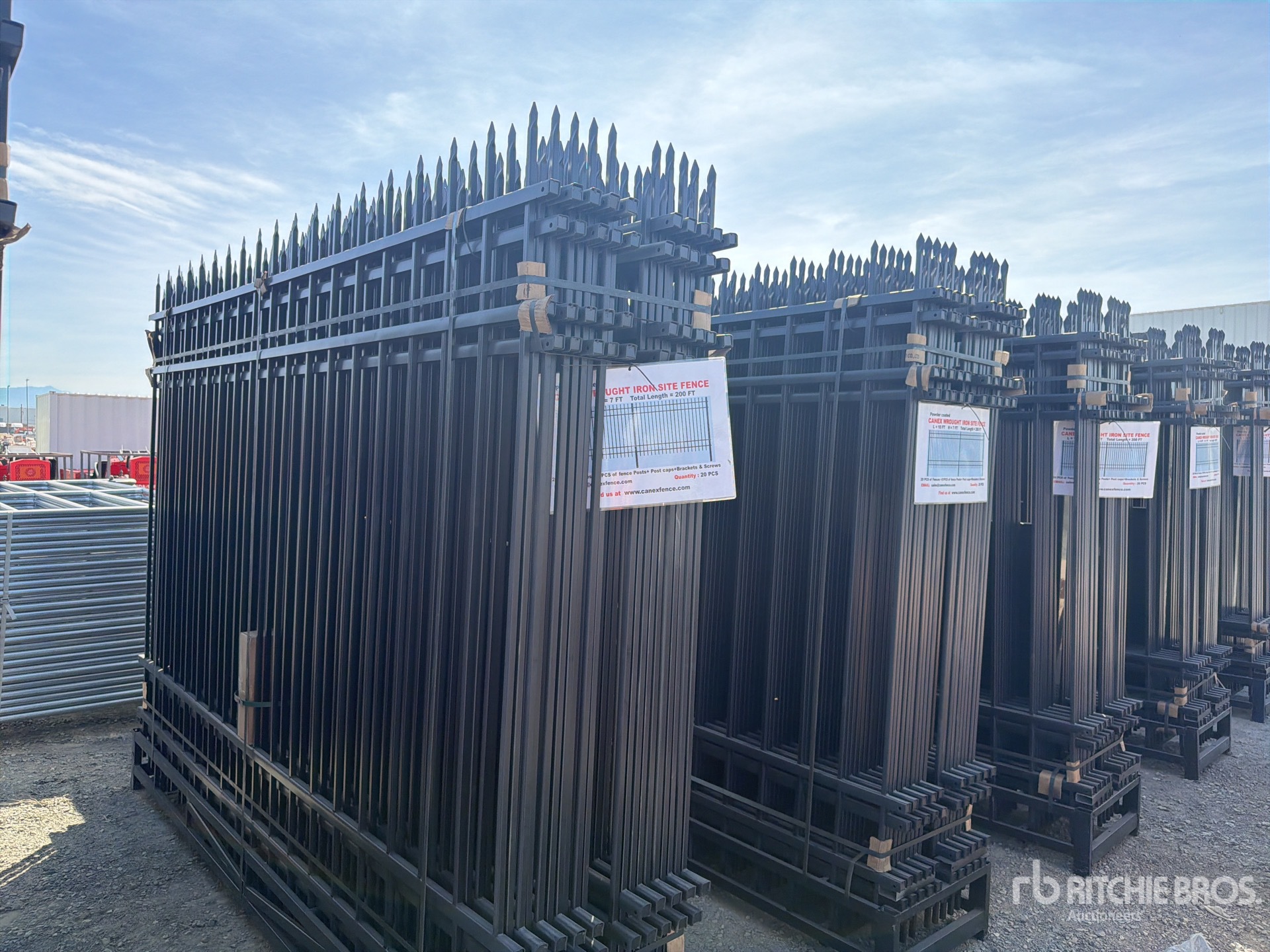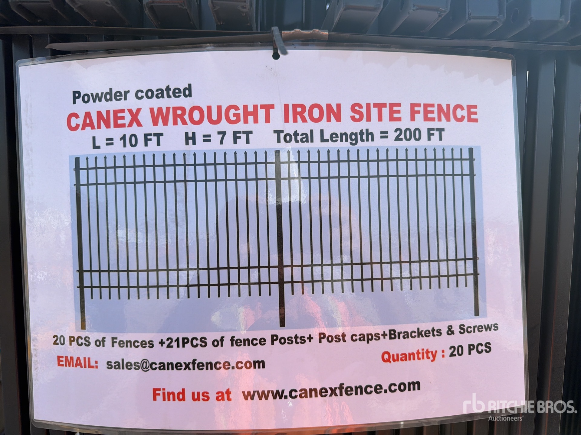 Quantity of (20) Canex 7 ft x 10 ft Powder Coated Wrought Iron Site Fence (Unused)