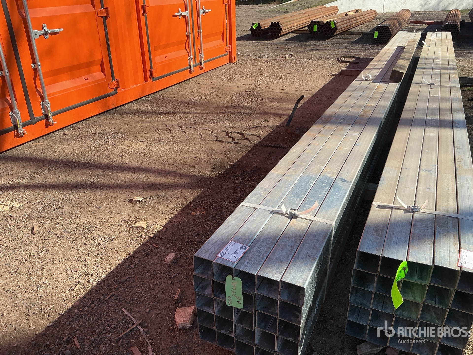 Quantity of (25) 3 in Square 14 ga Galvanized 24 ft Long Pipe (Unused)