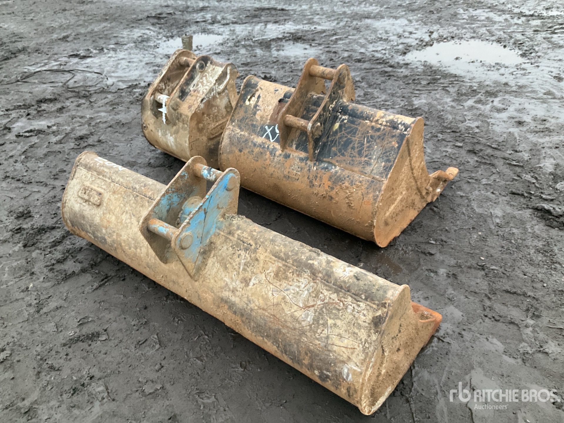 45 mm Diameter Pins, 150 mm Center of Pin Boss to Center of Pin Boss, 250 mm Inside to Inside Pin Boss Spacing, Cleanup 1500mm and (2) Digging 900mm and 450mm