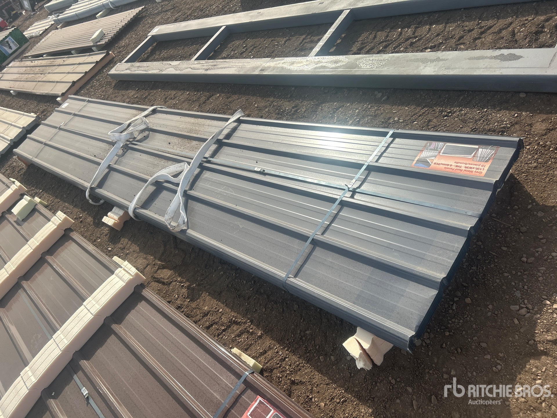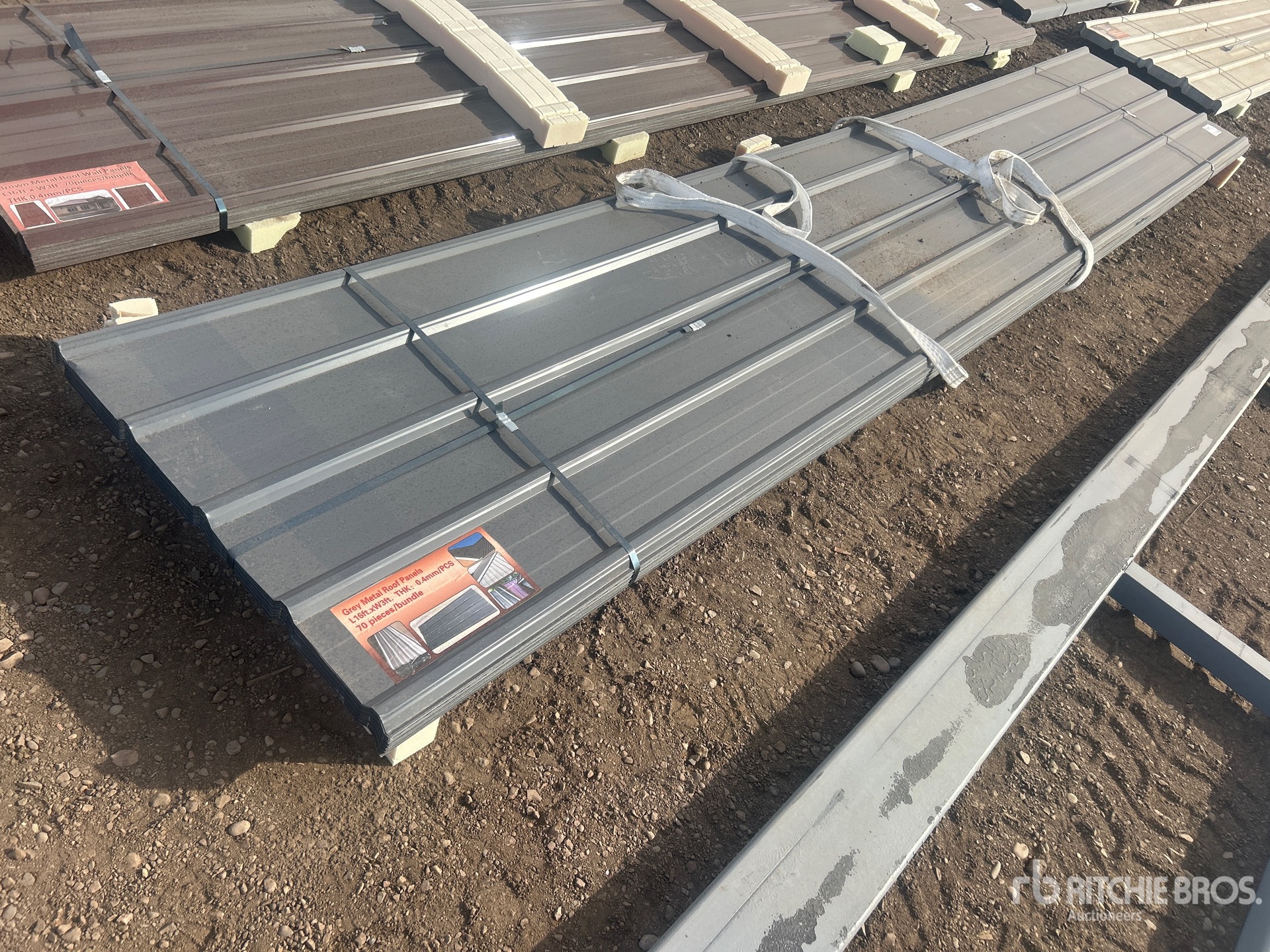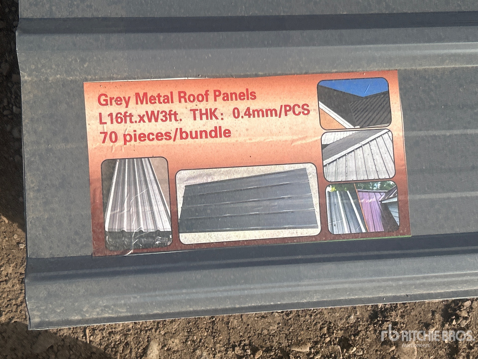 Quantity of (70) 16 ft x 3 ft Grey Metal Roof Panels (Unused)