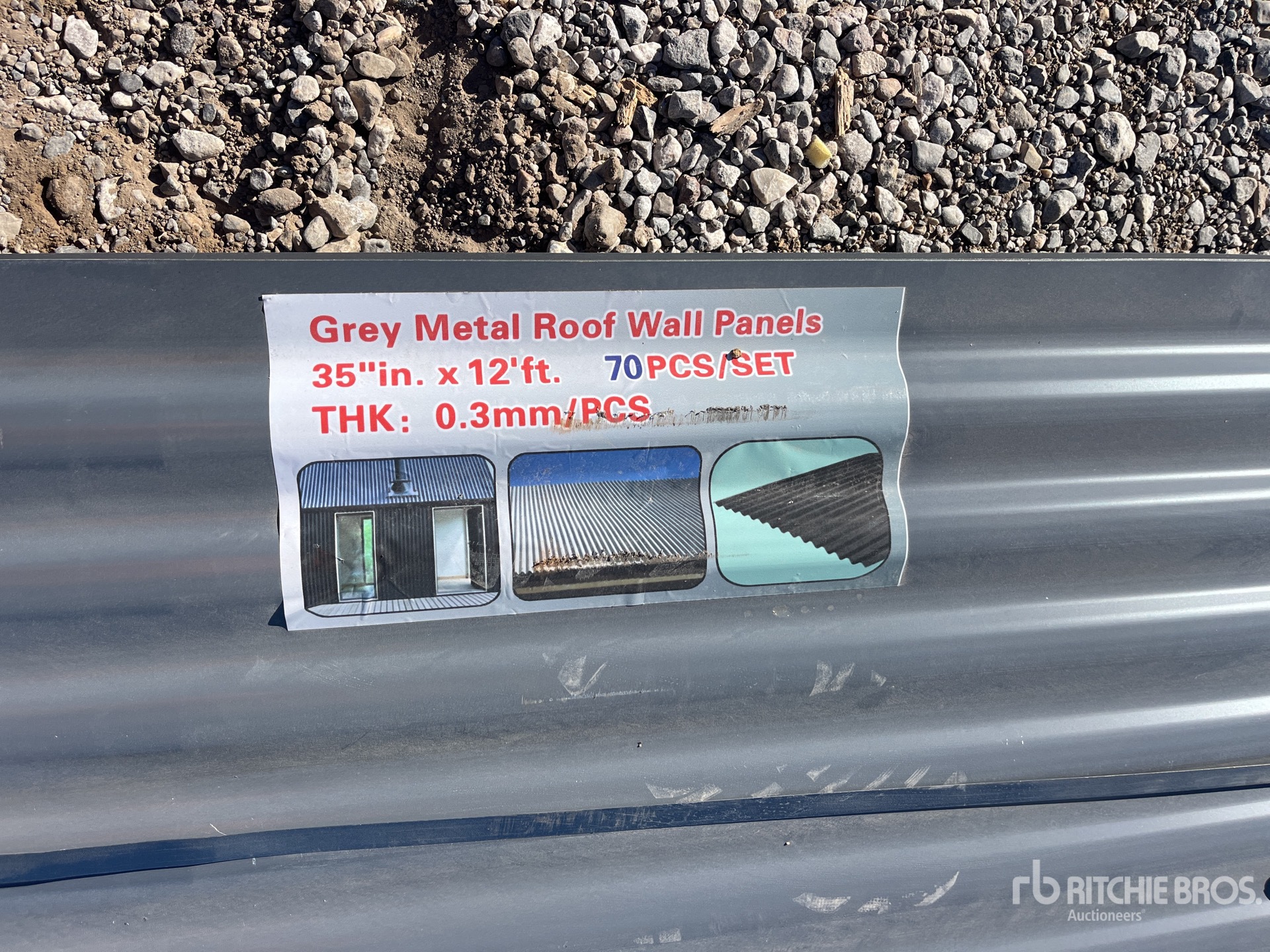 Quantity of (70) Grey Metal Roof Panels (Unused)