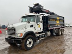 Mack AI 6 Cylinder 11.9 L Diesel 400 hp Engine, 2006 US EPA Label, 3096 Engine hrs, Eaton Fuller 8LL Manual Transmission, 18000 lb Front Axle, 44000 lb Rears, 75200 lb GVWR, Air Ride Cab, 315/80R22.5 Front Tires, 11R22.5 Rear Tires, Double Frame, Spring over Walking Beam Suspension, 282 in Wheelbase, PTO, 5 ft - 22 ft 2 Section Boom, X-Type Outriggers, 20 ft x 96 in Bed