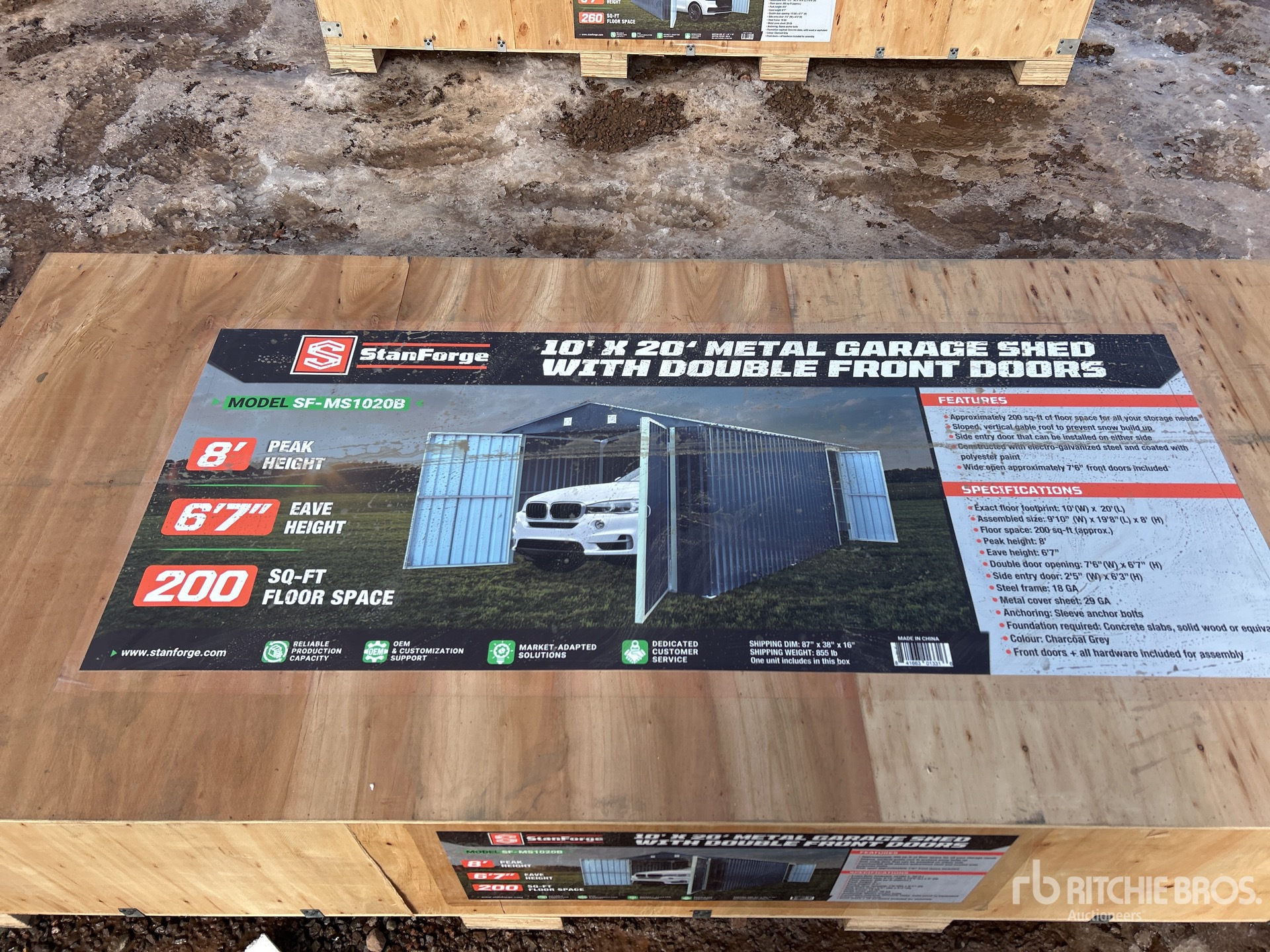StanForge MS1020B 10 ft x 20 ft Metal Garage Shed (Unused)