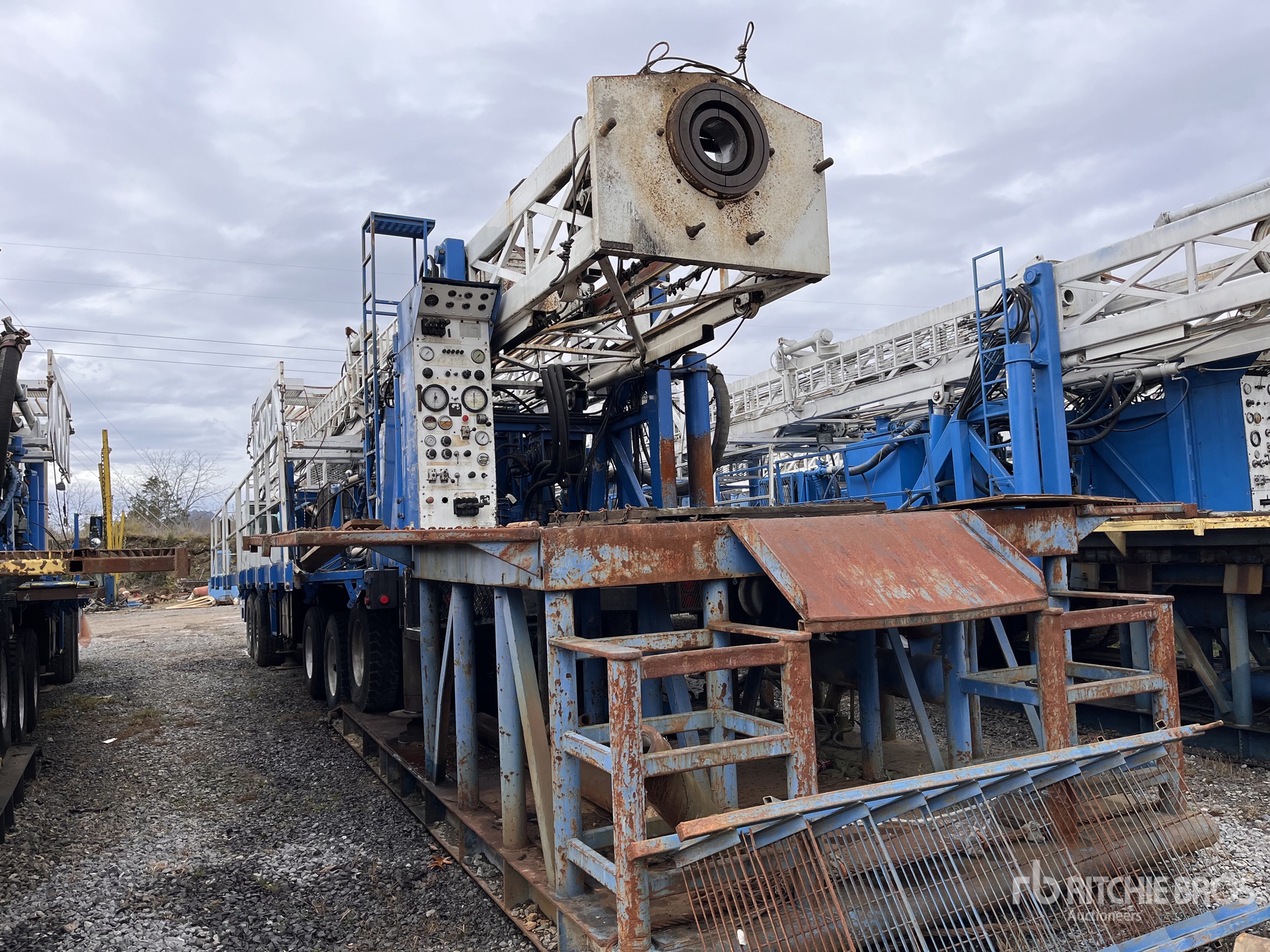 PTO Driven, Rotary Air Drill, Auto Rod Changer, Winch, Straight Down Outriggers, Detroit Series 60 14 L Diesel 665 hp Engine, 2007 US EPA Label, 13172 Engine hrs, Engine Brake, Eaton Fuller 18-Speed Manual Transmission, 44000 lb Front Axle, 74240 lb Rears, 118240 lb GVWR, Aluminum Wheels, 445/65R22.5 Front Tires, 12R22.5 Rear Tires, Air Lift Pusher Axle, Walking Beam Suspension, 312 in Wheelbase, PTO