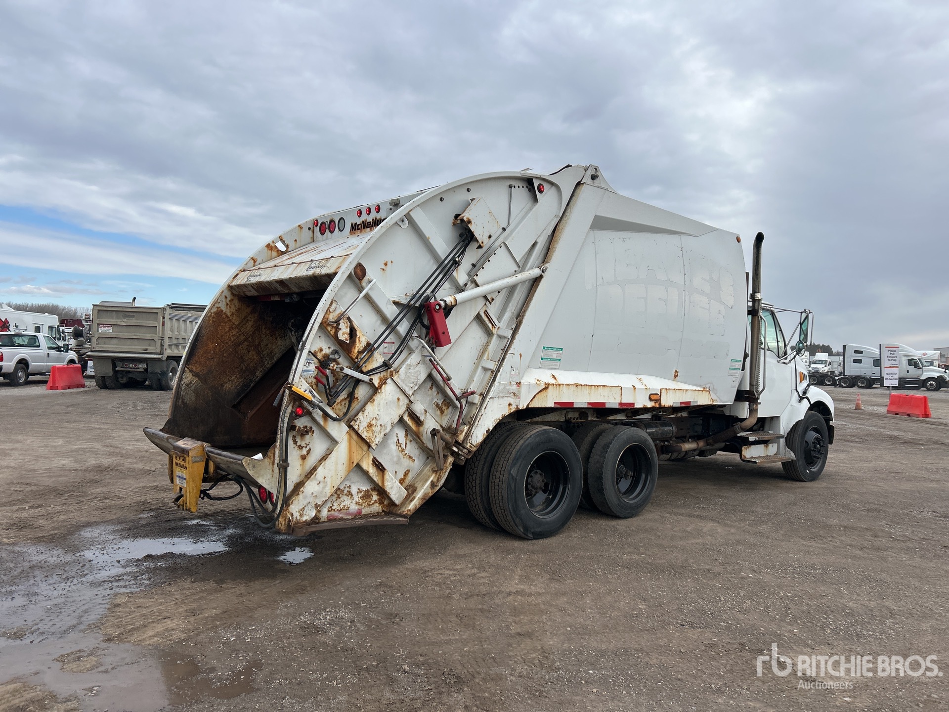 Cummins ISB 6 Cylinder 6.7 L Diesel 260 hp Engine, 2599 Engine hrs, Allison 3500 Automated Transmission, 12000 lb Front Axle, 23000 lb Rears, 6.14:1 Axle Ratio, 295/75R22.5 Front Tires, 295/75R22.5 Rear Tires, Spring Suspension, 202 in Wheelbase, PTO, Hydraulic System, Mcneilus Collection Body