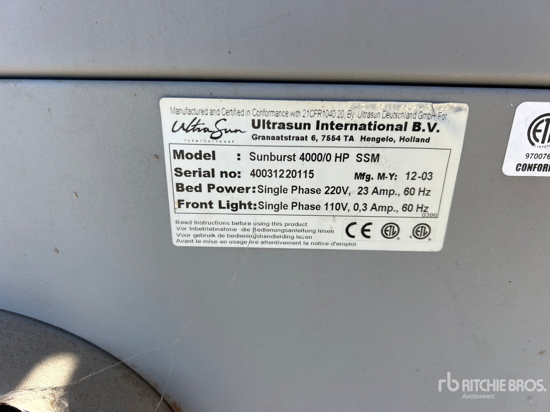 The detailed equipment information is limited in scope, and Ritchie Bros. Auctioneers has not inspected any aspects or components of the equipment other than those expressly set forth herein. Unless expressly stated, we make no representations or warranties, express or implied, concerning the equipment or its components, including without limitation any representations or warranties concerning functionality, conformity or compliance with any safety standard or requirement of any applicable authority or regulatory body, fitness for any particular purpose, or merchantability. You are strongly advised to perform your own detailed inspection of the equipment prior to bidding.