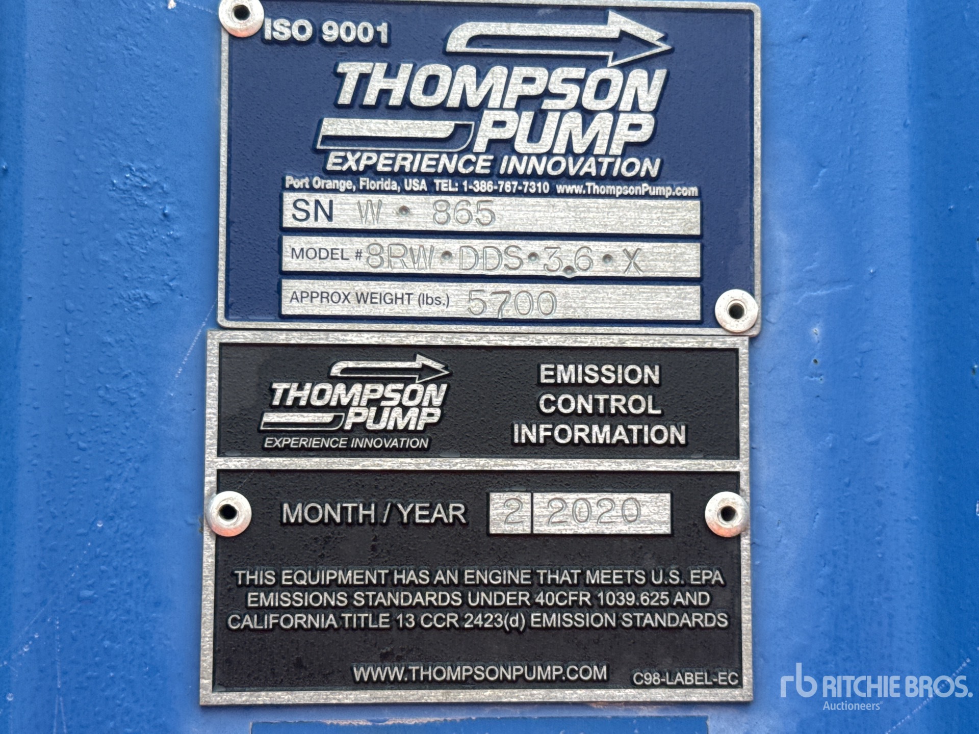8 in Intake, 8 in Discharge, Water Pump, 2019 US EPA Label, Deutz TD3.6L4 4 Cylinder 55.4 kW 3.6 L Diesel Engine
