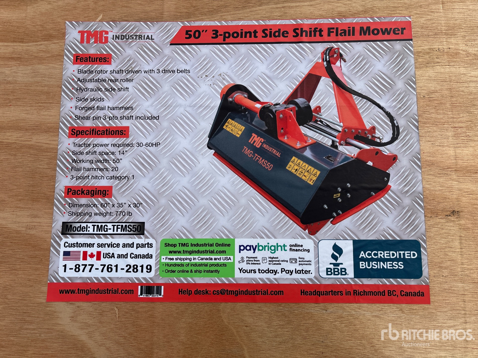 TMG TFMS50 50 in 3-Point Offset Flail Mower (Unused)
