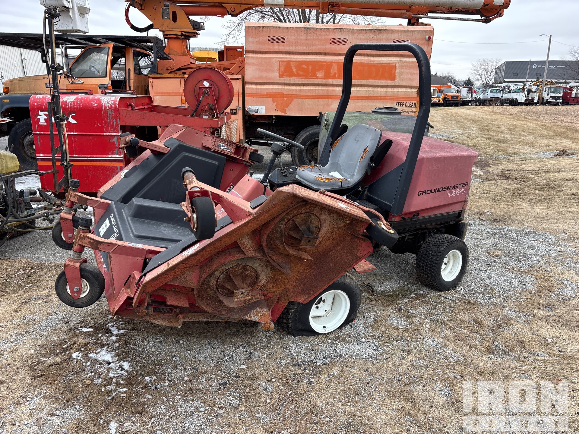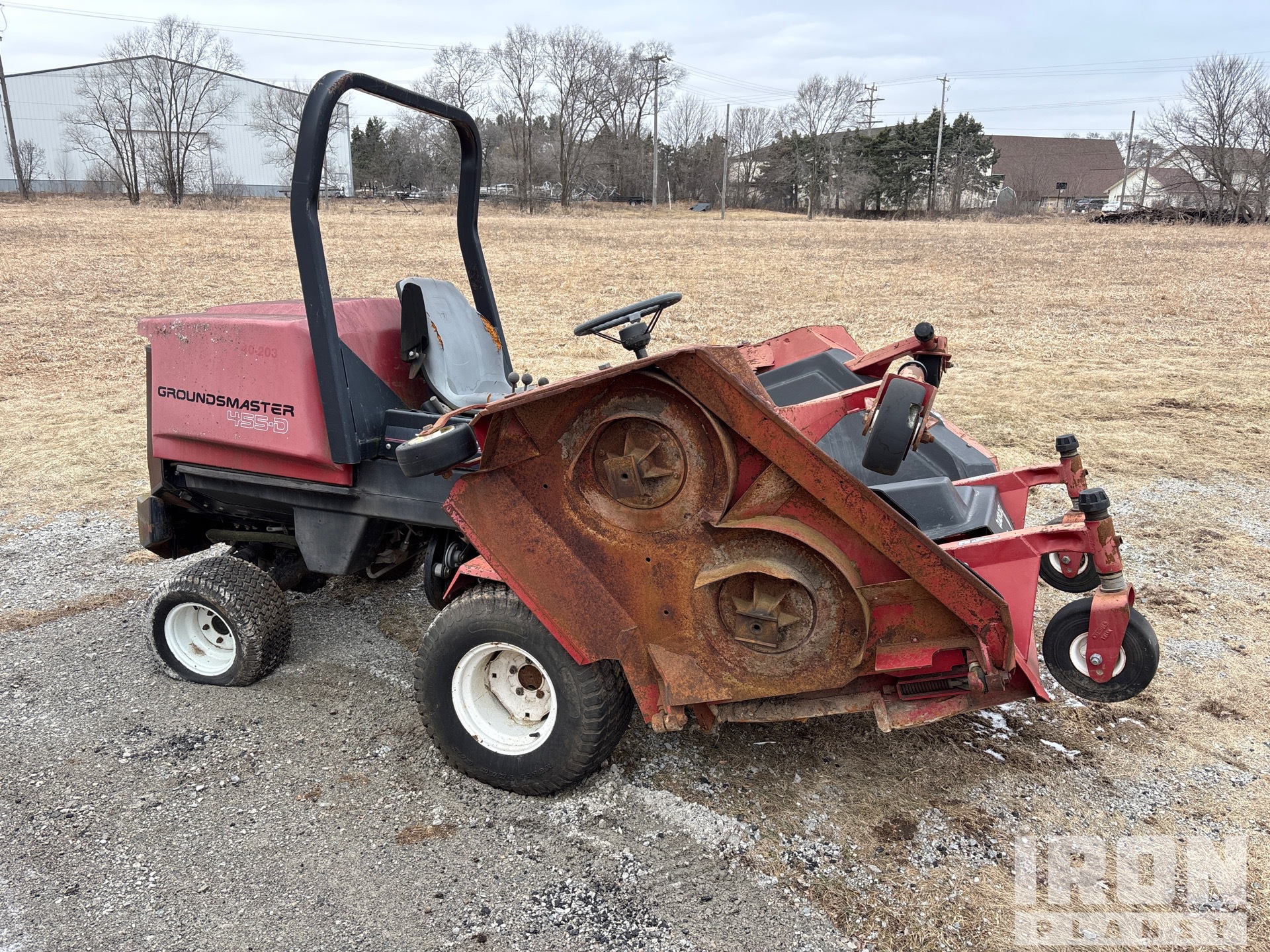 Deficient Components/Systems Include but are not limited to: No battery. Hydraulic line is disconnected. No key. Flat tires. Mower blades are missing.