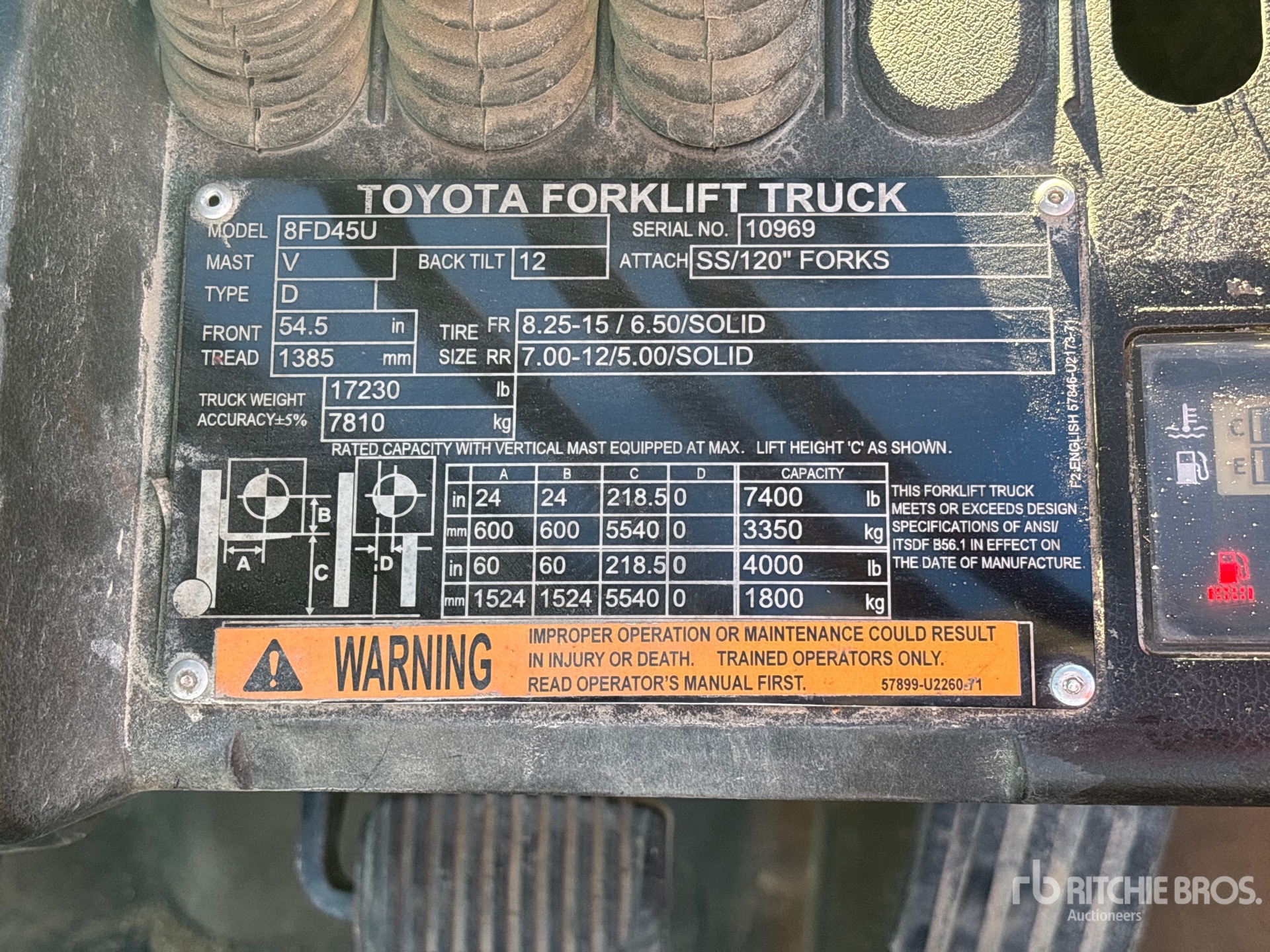 The detailed equipment information is limited in scope, and Ritchie Bros. Auctioneers has not inspected any aspects or components of the equipment other than those expressly set forth herein. Unless expressly stated, we make no representations or warranties, express or implied, concerning the equipment or its components, including without limitation any representations or warranties concerning functionality, conformity or compliance with any safety standard or requirement of any applicable authority or regulatory body, fitness for any particular purpose, or merchantability. You are strongly advised to perform your own detailed inspection of the equipment prior to bidding.