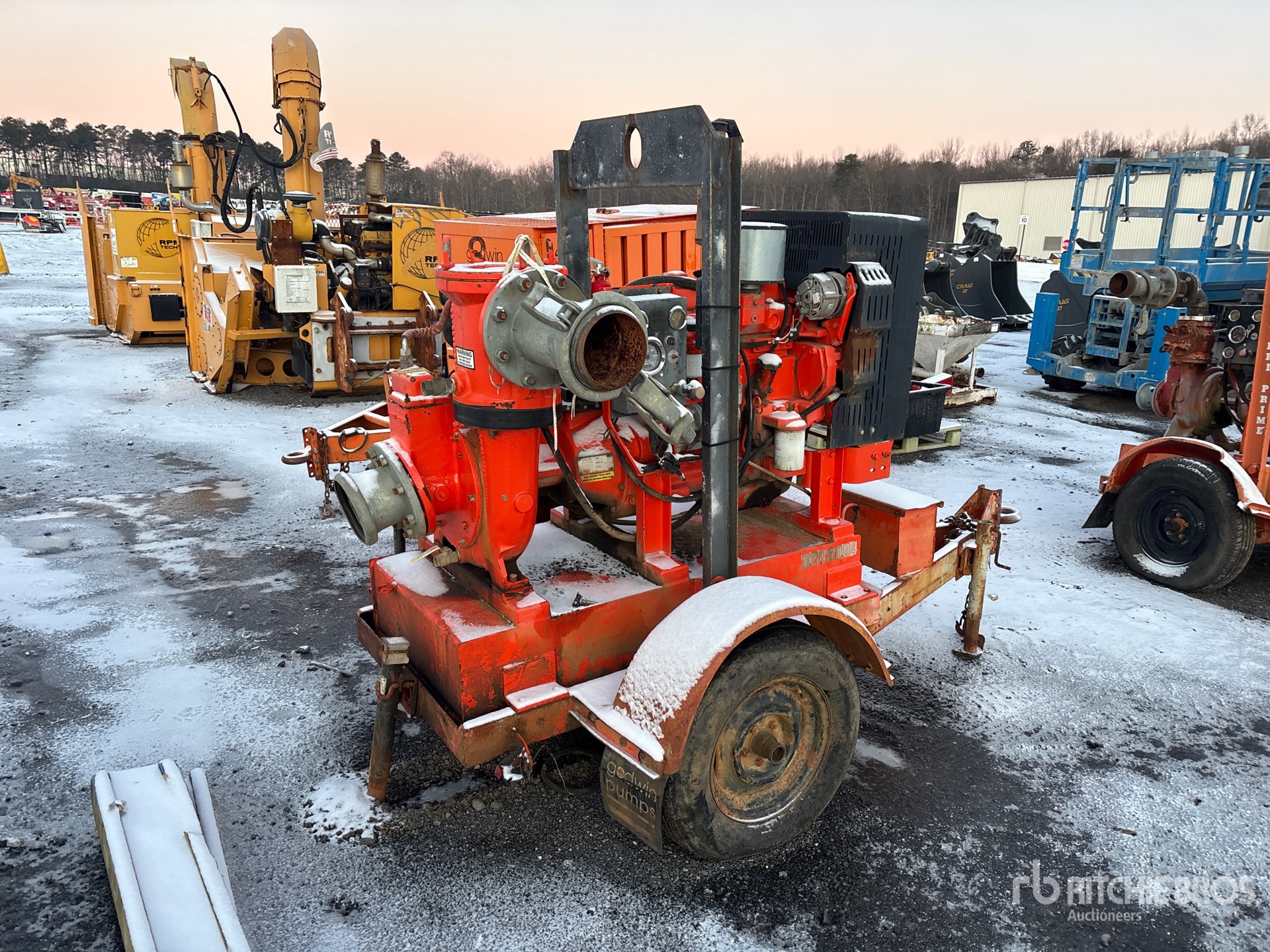 6 in Intake, 6 in Discharge, Diaphragm Water Pump, John Deere 4 Cylinder Diesel Engine, Lunette Ring Carrier Trailer