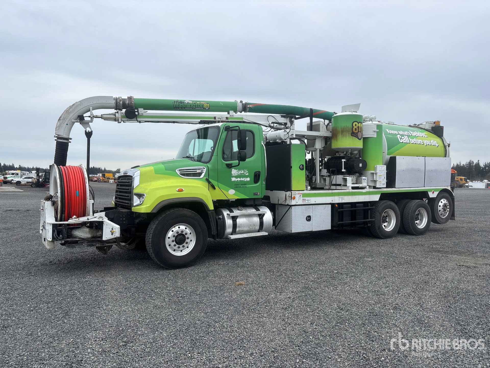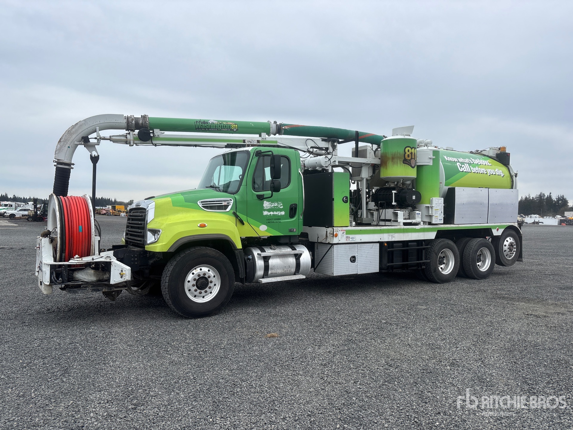 Located in Lane 11 Spot 30, Cummins ISL9 6 Cylinder 8.9 cid Diesel 370 hp Engine, 2017 US EPA Label, Requires Diesel Exhaust Fluid, 11135 Engine hrs, Allison 3000 Automatic Transmission, 20000 lb Front Axle, 46000 lb Rears, 5.63:1 Axle Ratio, 66000 lb GVWR, Aluminum Wheels, 425/65R22.5 Front Tires, 11R22.5 Rear Tires, Steerable Air Lift Tag Axle, Double Frame, Hendrickson Spring over Walking Beam Suspension, 264 in Wheelbase, Steel Debris Tank, Front Hose Reel, Fresh Water Tank, Hydraulic Lift Tailgate, Hydraulic Tailgate Locks, 18 ft Boom, 8 in Suction Hose, Bean Hydraulic Driven Pump