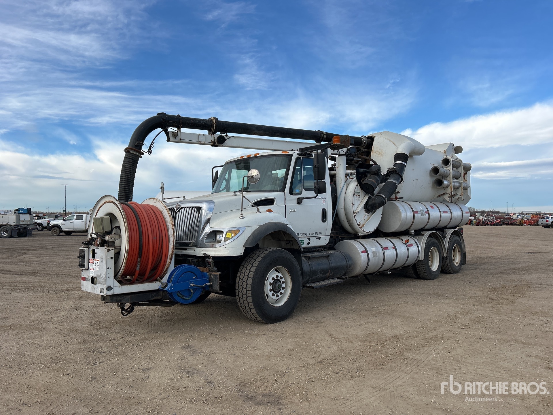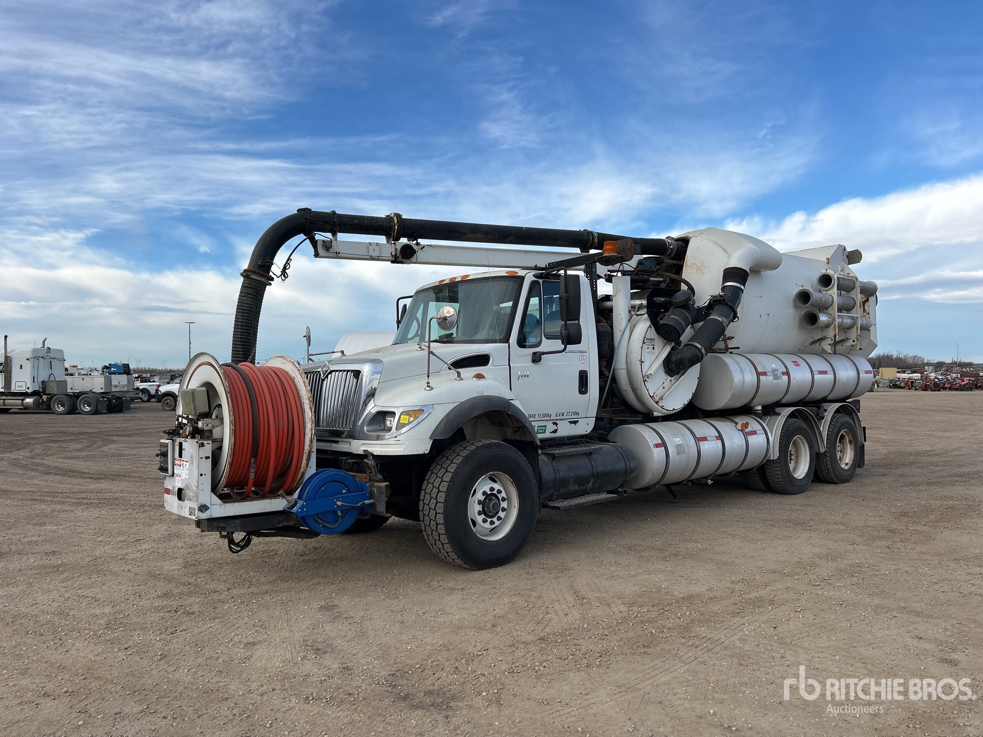 Cat C11 6 Cylinder Diesel Engine, 14893 Engine hrs, Allison Automatic Transmission, Differential Lock, Air Ride Cab, 425/65R22.5 Front Tires, 11R22.5 Rear Tires, Dual Steering Boxes, Double Frame, Hendrickson Haulmaax Rubber Suspension, 248 in Wheelbase, PTO, Steel Debris Tank, Hoist, Vibrator, Front Hose Reel, Fresh Water Tank, Full Open Tailgate, Wash Down System, Hydraulic Tailgate Locks, 18 ft Telescopic Boom, 8 in Suction Hose, Vector Pump w/ John Deere 6 Cylinder Engine, Cordless Remote Control