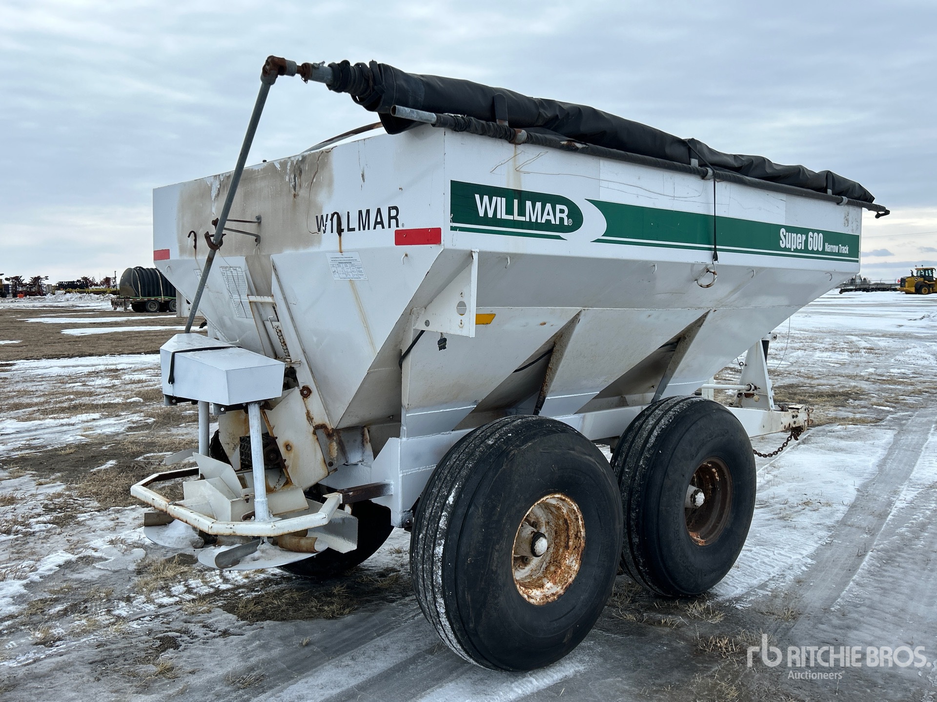 540 PTO, Willmar Super 600 Narrow Track 10 ft 6 ton Body, 7 in Discharge Conveyor, Dual Spinners, Manual Roll Tarp