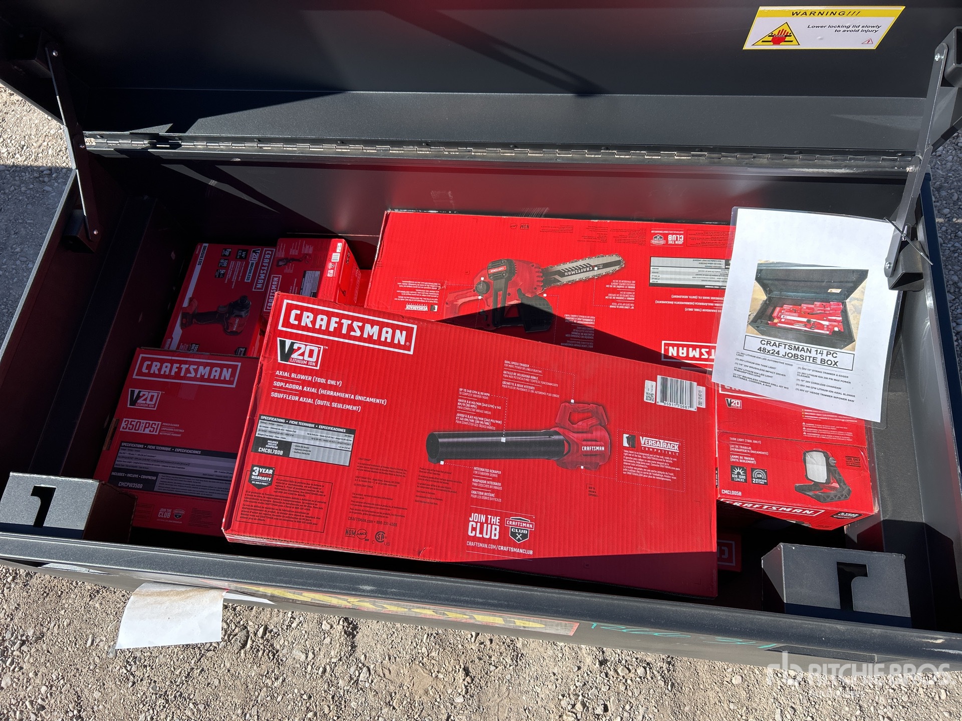 20 V Max Power Cleaner, 10 in 20 V Cordless Chainsaw, 20 V Axial Blower, 22 in, 20 V Hedge Trimmer, 20 V Led Automotive Hood Light, 20 V Task Light, 1/4 in 20 V Brushless Impact Driver, 20 V Led Light, Magnifying Lens, 1/2 in Brushless Hammer Drill Kit, 2 Batteries, Charger, Bag